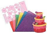 How to get the most from this kit . My eight-year old received this kit as a birthday present. We had a great time making the candles, though the quantity of wax inside the kit was not enough to make more than 1 or 2 of the items shown. We used a hair dryer to soften the wax before rolling it (reviewers that tried the oven, or didn't soften the wax had a lot of problems that we didn't have). The best part of this kit are the little templates for making bees and butterflies. We will buy larger wax sheets from other suppliers to make more candles like this in the future.